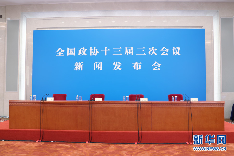 全国政协十三届三次会议新闻发布会于5月20日15:00召开。为有效防控疫情,共同维护公共卫生与健康,发布会将采用网络视频形式进行。大会新闻发言人郭卫民向中外媒体介绍本次大会有关情况并回答记者提问。新华网进行现场直播。图为新闻发布会现场。新华网 王翰林 摄