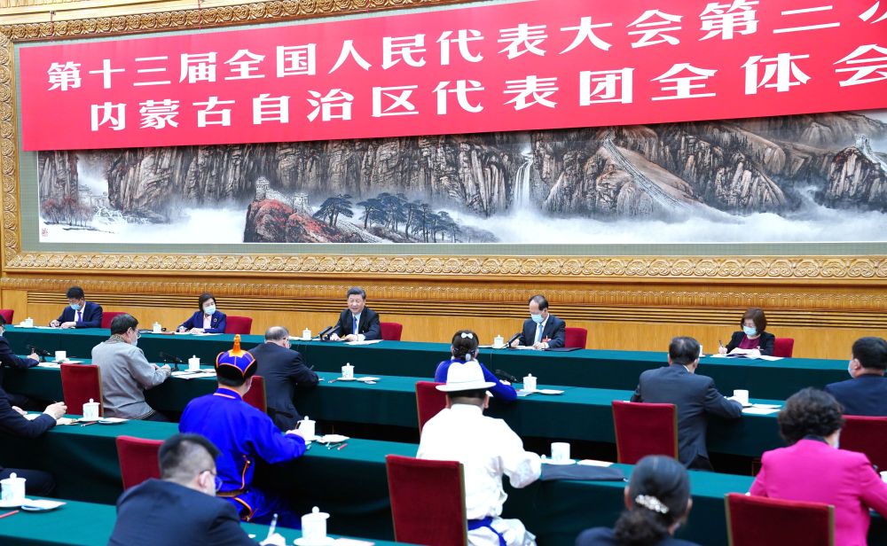 2020年5月22日,习近平参加十三届全国人大三次会议内蒙古代表团的审议。新华社记者 谢环驰 摄