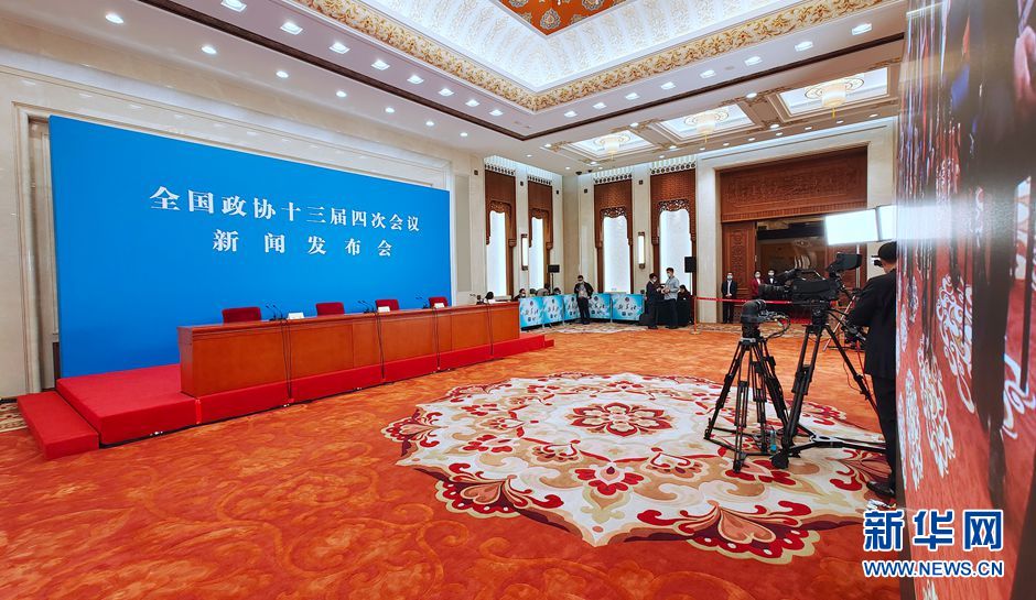3月3日,全国政协十三届四次会议召开新闻发布会。大会新闻发言人郭卫民向中外媒体介绍本次大会有关情况并回答记者提问。图为人民大会堂新闻发布厅现场。新华网 王翰林 摄