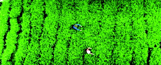 《太空的见证》视频截图。西藏墨脱县茶农在采茶。