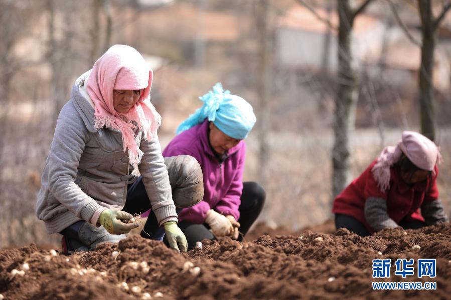 甘肃省定西市渭源县元古堆村村民在种植百合(2020年3月11日摄)。新华社记者 马希平 摄