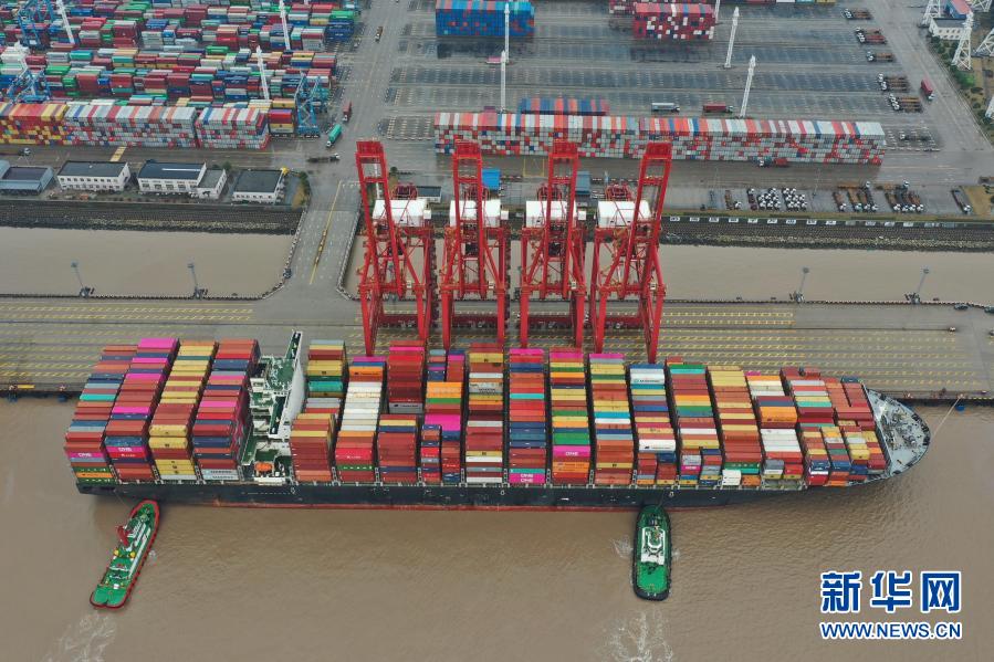 一艘货轮停靠在宁波舟山港穿山港区集装箱码头(2020年2月26日摄)。新华社记者 黄宗治 摄