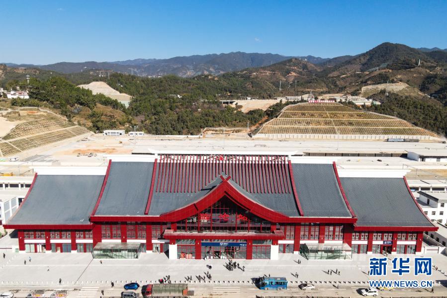 这是12月30日拍摄的铁路临沧站(无人机照片)。新华社记者 王冠森 摄