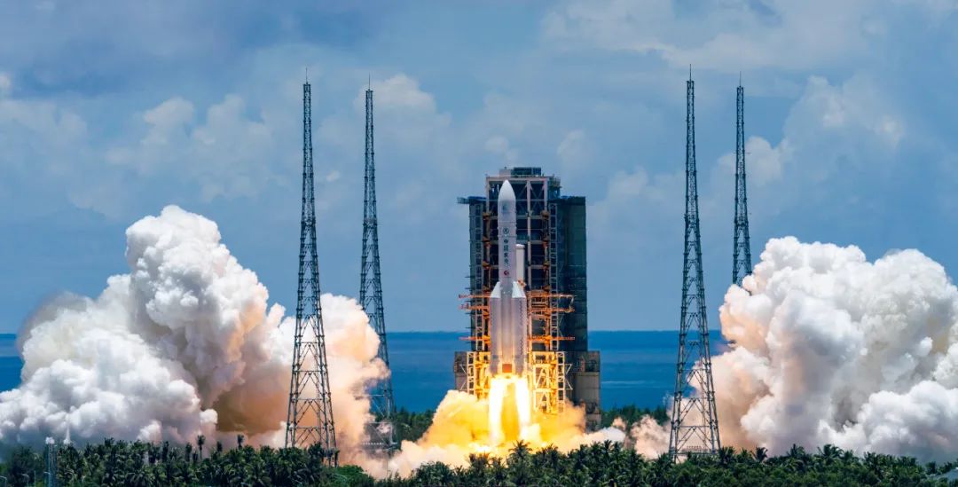 2020年7月23日,长征五号遥四运载火箭在中国文昌航天发射场点火升空,实施我国首次火星探测任务(天问一号任务)。新华社记者 才扬 摄