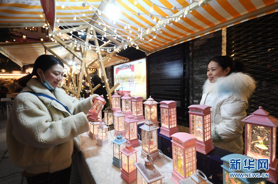 1月2日,游客(左)在重庆南岸龙门浩老街选购商品。新华社记者 王全超 摄