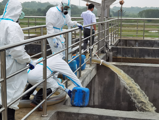 由于现场没有加药设备,他们决定用人工进行投加,现场边做边改。同时,航天凯天通过供应商从广东各地紧急调配药剂。当晚上11点多进行动员后,第二天早上5时,全员就已前往污水处理厂。