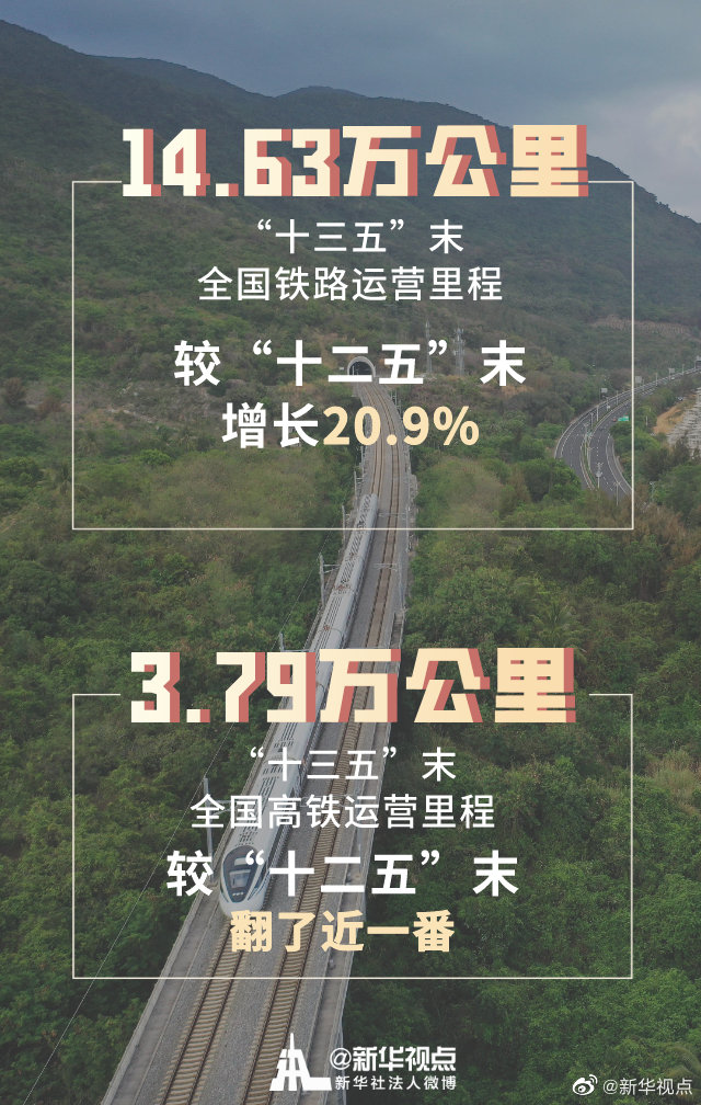 2020年,中国铁路“十三五”圆满收官!来自中国国家铁路集团有限公司的最新统计显示,“十三五”期间,全国铁路营业里程由“十二五”末的12.10万公里增加到14.63万公里、增长20.9%,高铁由1.98万公里增加到3.79万公里、翻了近一番。“四纵四横”高铁网提前建成,“八纵八横”高铁网加密成型;国家铁路完成货物发送量157.8亿吨、较“十二五”增长1.7%,完成旅客发送量149亿人次,其中动车组发送90亿人次,较“十二五”分别增长41%、152%。高速、高原、高寒、重载铁路技术达到世界领先水平,复兴号高速列车迈出从追赶到领跑的关键一步。(记者樊曦、周圆)