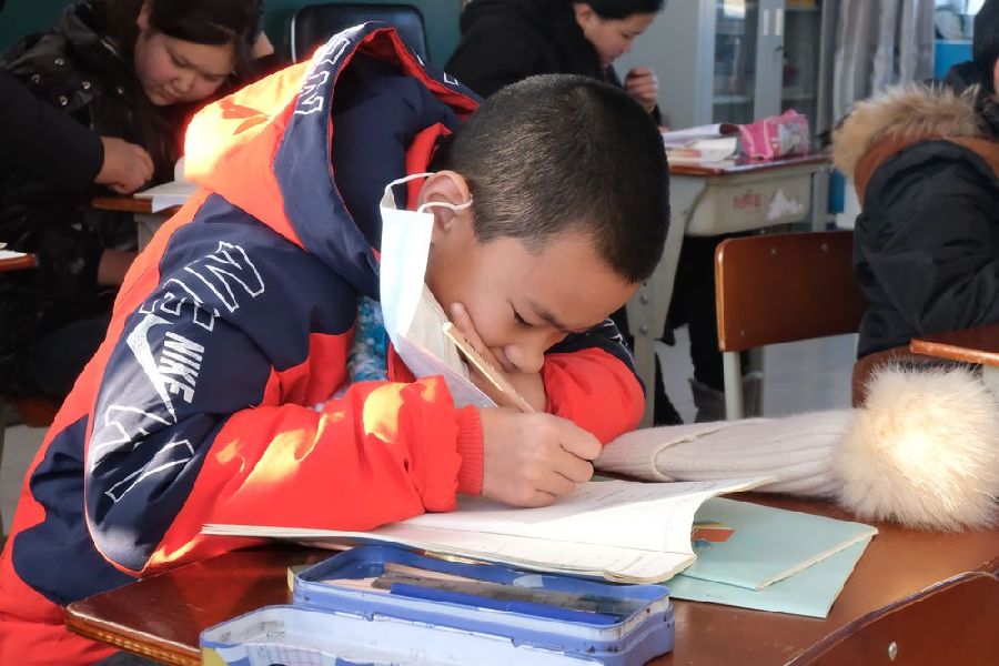 北纬53度多,气温零下40多摄氏度,这是中国最北村庄——黑龙江省漠河市北红村。村中北红小学的讲台上,王忠雷对即将放寒假的学生事无巨细地叮嘱着。午后阳光照在课桌上,窗外山坡上耸立着一棵棵身披白雪的青松。