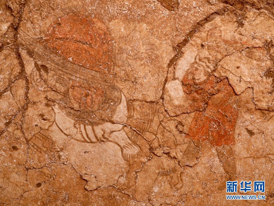 这是唐代康善达墓的墓室壁画(2020年12月15日摄)。新华社发(陕西省考古研究院供图)