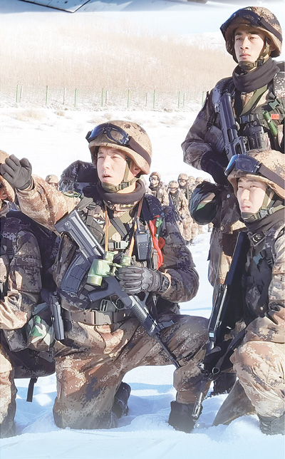 新疆生产建设兵团直属人武部在天山北麓连续开展冬季适应性训练。王 宁摄
