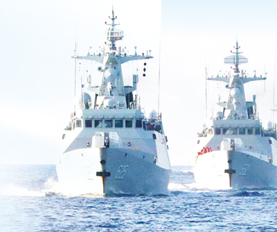 南部战区海军某基地护卫舰支队组织舰艇编队在某海域展开实战化训练。潘小员 张 彬摄影报道