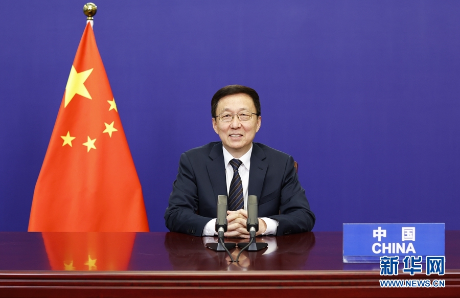 1月11日,中共中央政治局常委、国务院副总理韩正在北京以视频方式出席“一个星球”峰会并发表讲话。新华社记者 黄敬文 摄