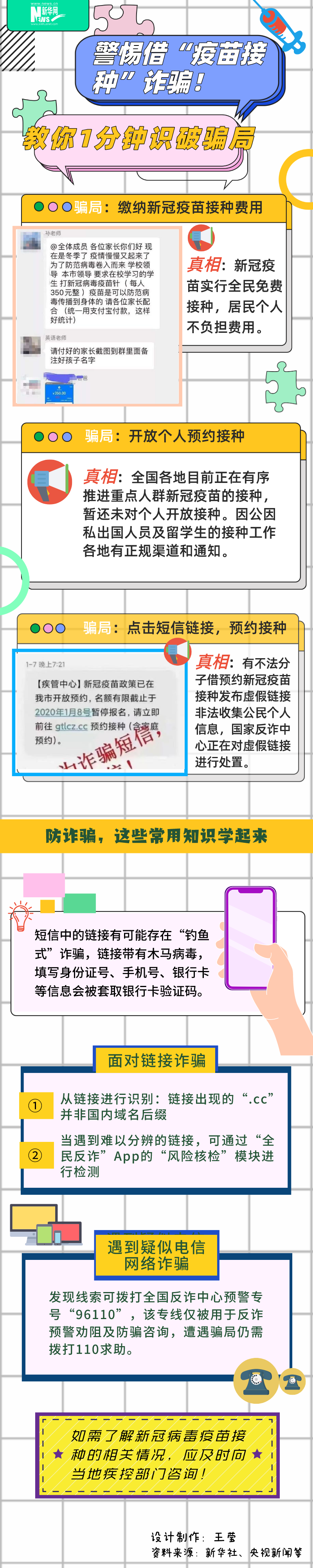 近期,全国多地有序开展新冠病毒疫苗接种,一些不法分子从中嗅到了“机会”,借疫苗接种设局实施诈骗,快来识破这些骗局!