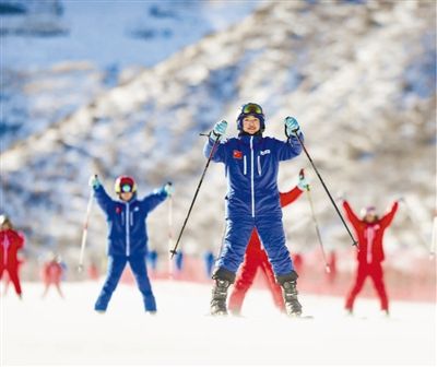 每到冬季,内蒙古自治区乌兰察布市凉城县全县10所中小学校将体育课堂搬到位于县郊的岱海国际滑雪场,近万名学生在专业教练的指导下参加冰雪运动比赛和游戏。图为学生们正在滑雪。王正 摄