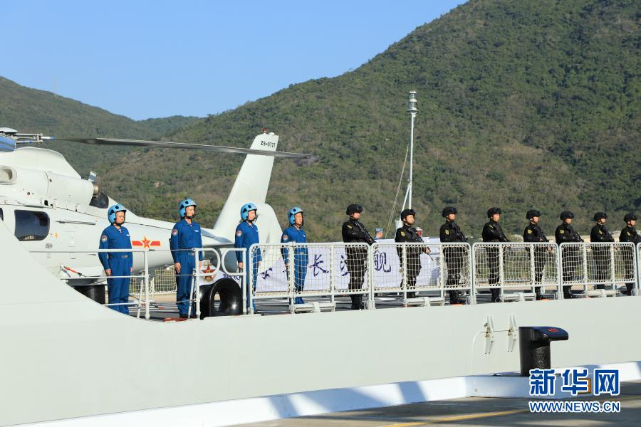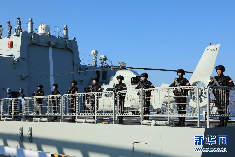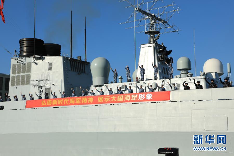 上午9时许,伴随着军乐声,编队舰艇依次解缆,缓缓驶离码头。甲板上,任务官兵精神抖擞,整齐列队,挥手告别。
