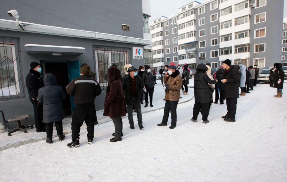 ↑2021年1月15日,吉林通化,东昌区老站街道铁北小区居民排队核酸检测。(图源CFP)