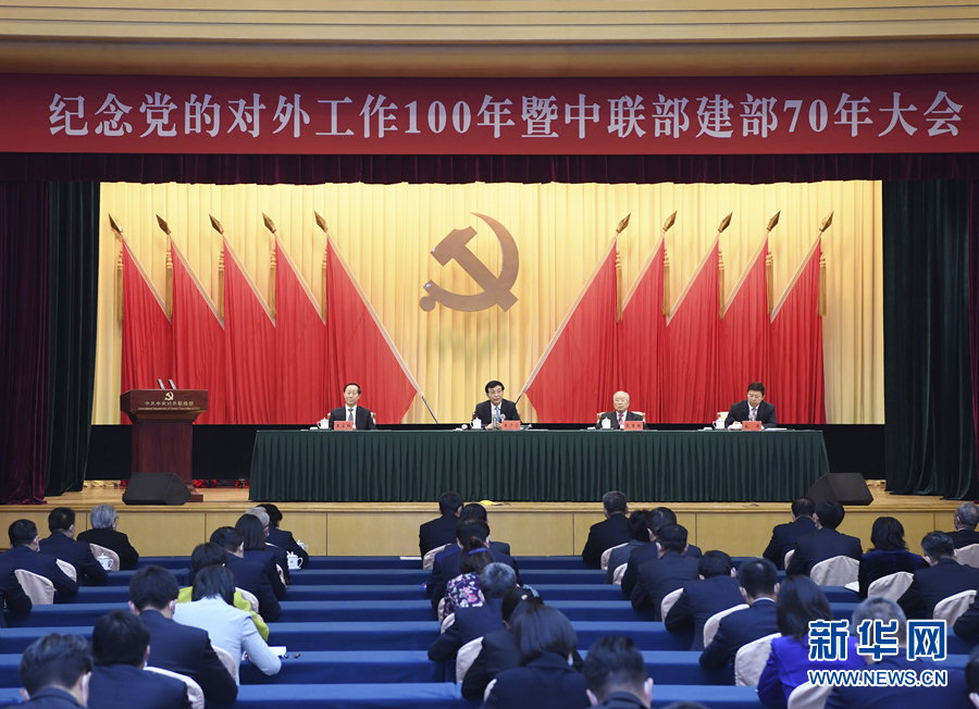 1月18日,纪念党的对外工作100年暨中共中央对外联络部建部70年大会在北京举行。中共中央政治局常委、中央书记处书记王沪宁出席会议并讲话。新华社记者 饶爱民 摄