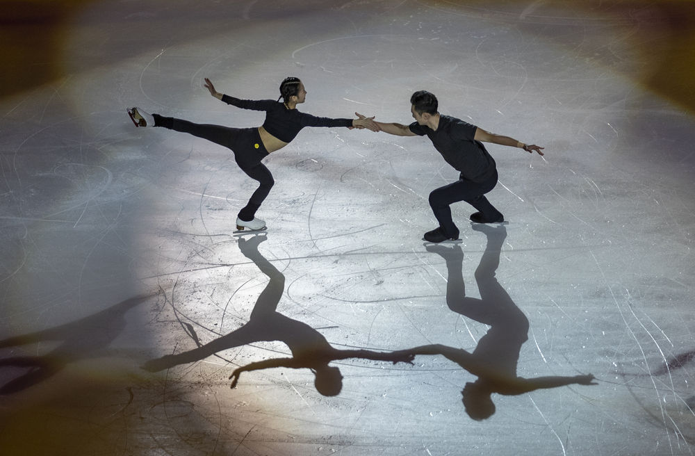 2020年11月8日,中国双人滑组合彭程(左)/金杨进行表演。新华社记者 黄伟 摄