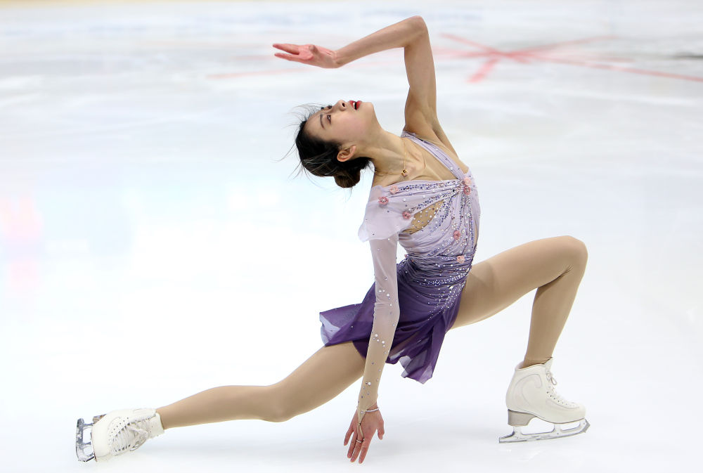 2021年1月1日,花样滑冰——国家集训队团队对抗赛在京举行,图为“精英队”选手陈虹伊在女子单人滑短节目比赛中。新华社记者 雒圆 摄