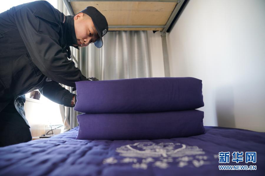 吴长龙在宿舍整理内务(1月10日摄)。新华社记者 牟宇 摄