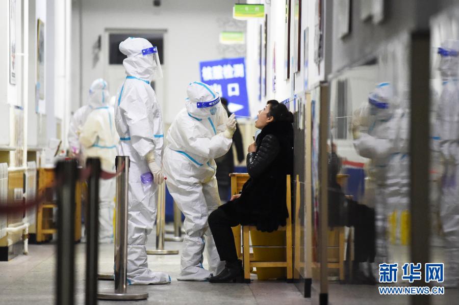 医务人员在哈尔滨市香坊区一处核酸检测点为市民采集核酸样本(1月24日摄)。新华社记者 王建威 摄