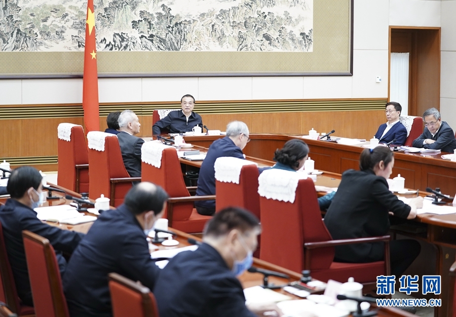 1月25日,中共中央政治局常委、国务院总理李克强在北京主持召开座谈会,听取教育、科技、文化、卫生、体育界人士和基层群众代表对《政府工作报告》、《“十四五”规划和二〇三五年远景目标纲要(草案)》两个征求意见稿的意见建议。中共中央政治局常委、国务院副总理韩正出席。新华社记者 燕雁 摄