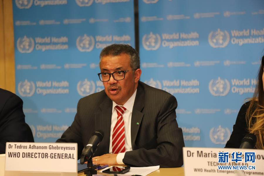 2020年3月11日,在瑞士日内瓦,世界卫生组织总干事谭德塞在例行记者会上发言。谭德塞说,新冠肺炎疫情从特征上可称为大流行。新华社记者 陈俊侠 摄