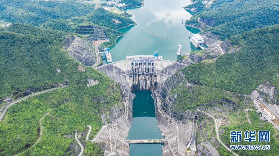 构皮滩水电站通航工程(2020年7月2日摄,无人机照片)。新华社记者 陶亮 摄