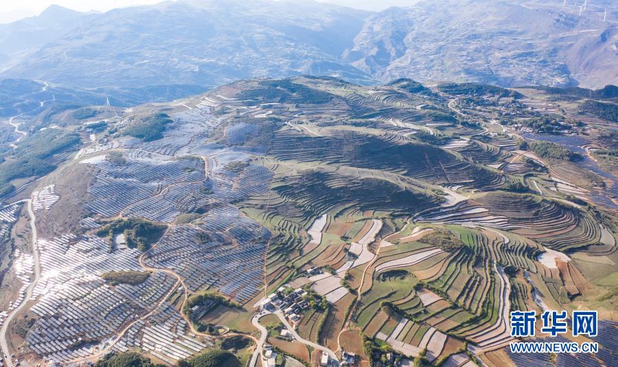 贵州金元集团威宁龙场农业光伏电站(2020年4月26日摄,无人机照片)。新华社记者 陶亮 摄