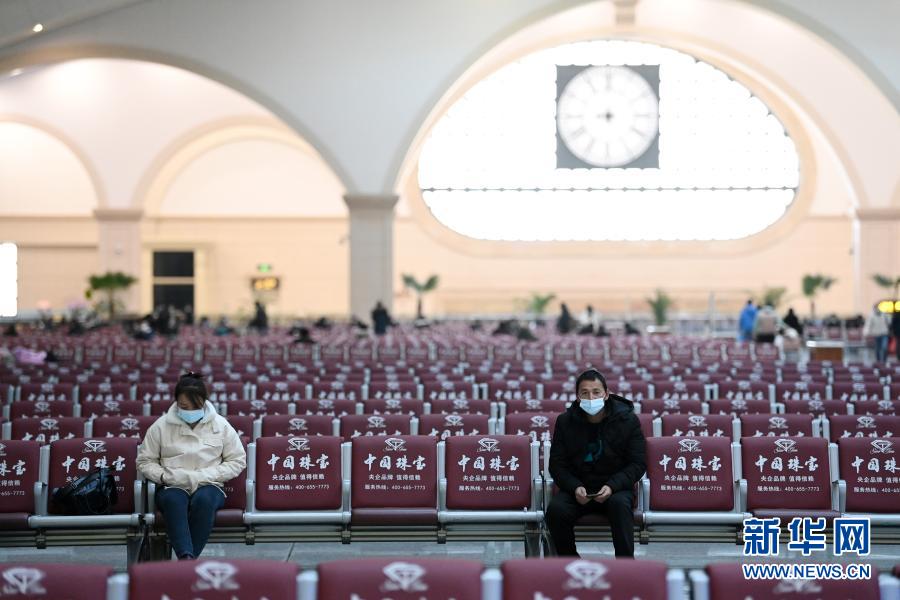 1月28日,旅客在哈尔滨火车站候车厅候车。