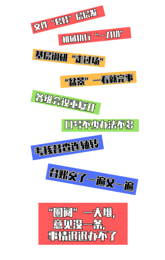 应付表格忙不停,材料填了却无用;基层调研“走过场”,“盆景”一看就完事;各级会议重复开,考核督查连轴转……