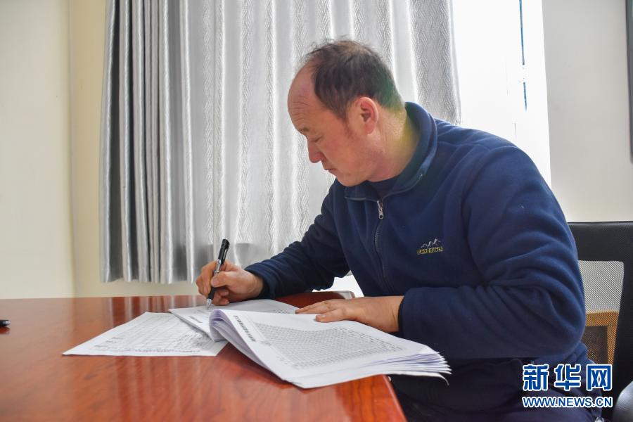 1月23日,高守勤在新疆吉木萨尔县野马繁殖研究中心值班室做笔记。新华社记者 高晗 摄