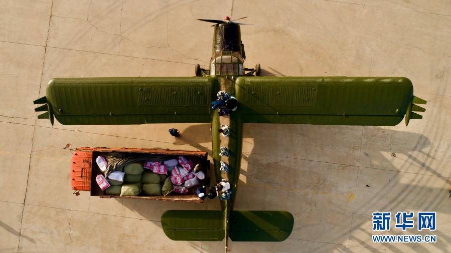 空军某运输搜救团官兵与当地群众密切配合装载种子(2020年6月7日摄)。)新华社发(丁少轩 摄)