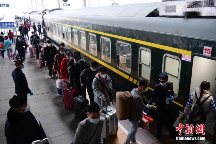 资料图 疫情防控下的春运旅客列车。中新社记者 陈文 摄