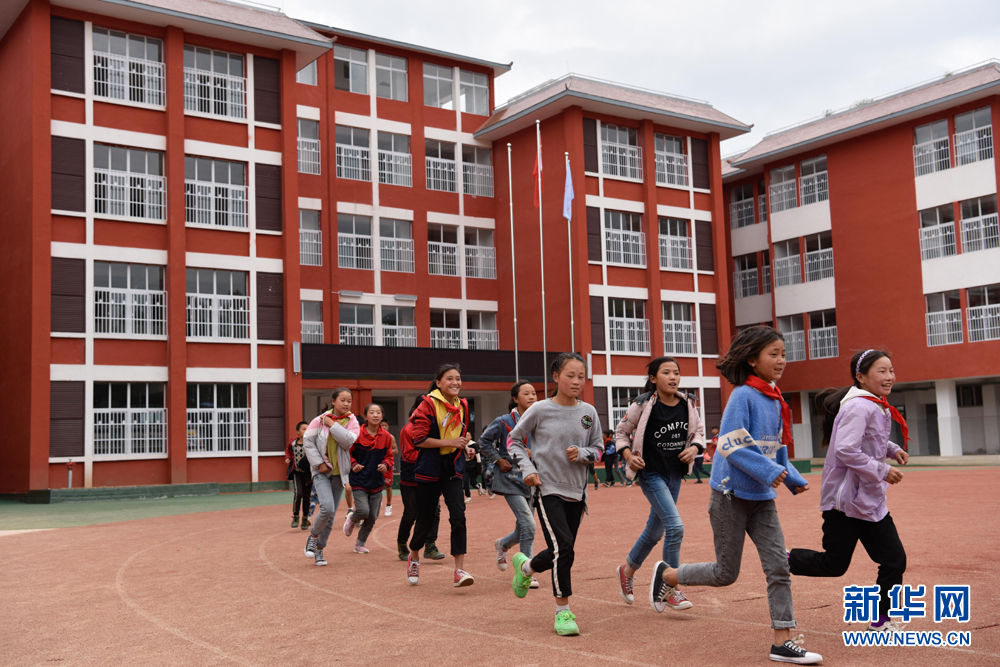 2020年6月22日,女孩们在四川省凉山彝族自治州布拖县阿布泽鲁小学的新操场上跑步。 新华社记者 胥冰洁摄