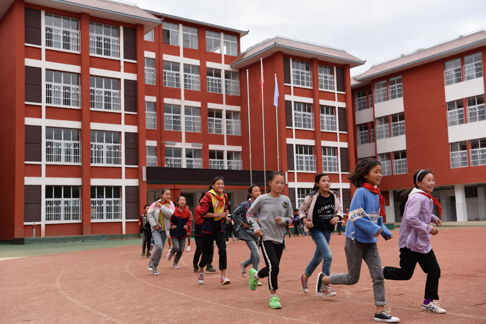 2020年6月22日,女孩们在四川省凉山彝族自治州布拖县阿布泽鲁小学的新操场上跑步。 新华社记者 胥冰洁摄