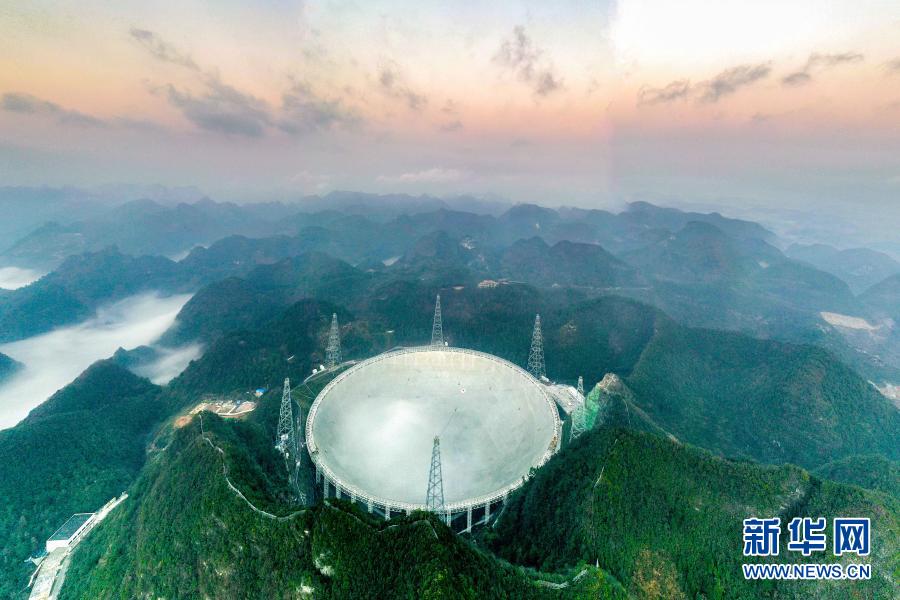 清晨,贵州平塘大窝凼。望远镜偌大的反射面从茫茫宇宙中抓取的射电信号数据,正源源不断传输到一百多公里之外的贵阳天文大数据基地。