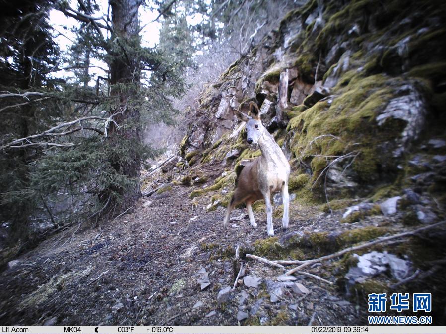 这是红外相机在长江源区玛可河流域拍摄到的马麝(2019年1月22日摄)。 新华社发