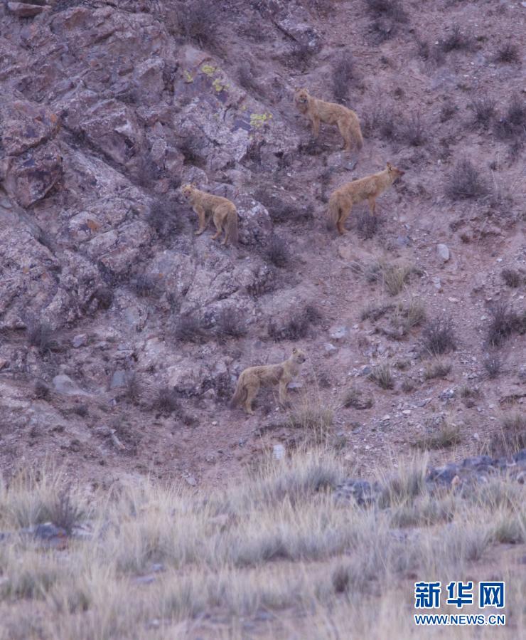 2019年5月9日在柴达木盆地南缘地区拍摄到的豺群。 新华社发