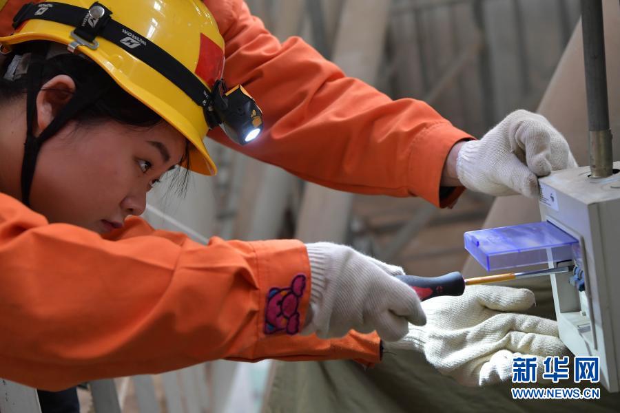1月29日,在南昌西站顶部的夹层内,李蓉曼和同事们对电力设备进行检修。新华社记者 彭昭之 摄