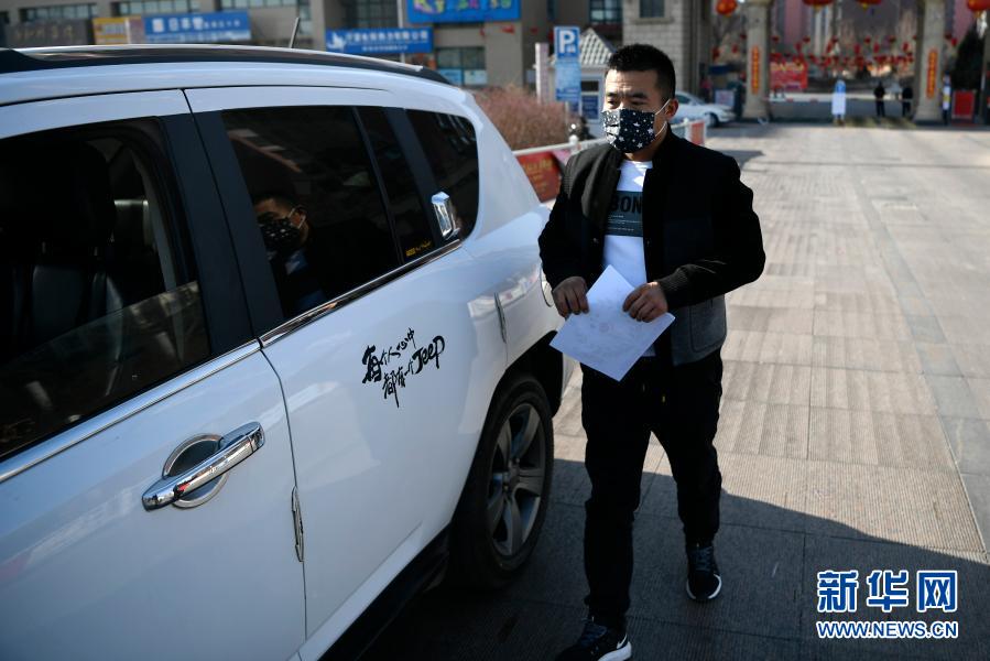 王晶准备驾车护送医护人员去参加培训(2020年1月31日摄)。新华社记者 王鹏 摄