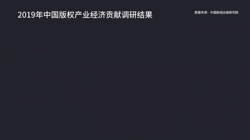 中国新闻出版研究院发布的2019年中国版权产业经济贡献调研结果显示,中国版权产业行业增加值为7.32万亿元,占GDP比重为7.39%。其中,核心版权产业行业增加值达到4.59万亿元。版权产业在国民经济中的比重稳步提升,总体规模不断壮大。