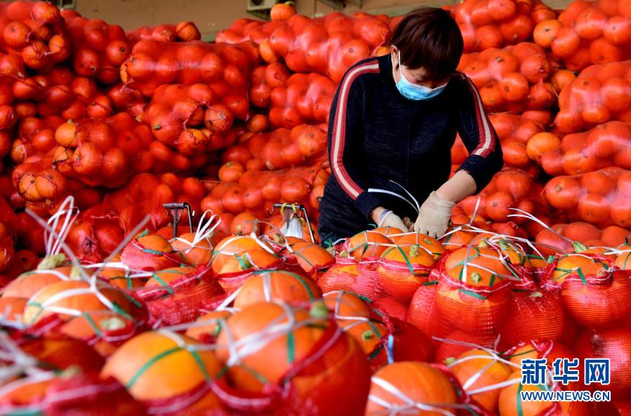 2月5日,在郑州市中牟县万邦国际农产品物流城,工作人员在整理蔬菜。新华社记者 朱祥 摄