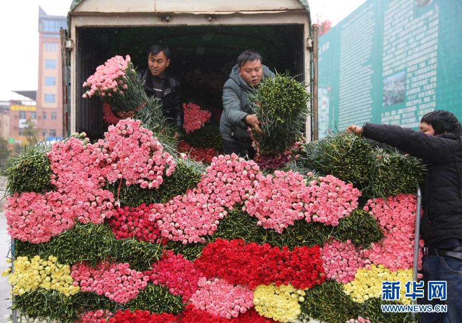 2月9日,商家在昆明斗南花卉市场准备鲜花。新华社发(梁志强 摄)