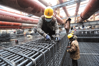 昨日,地铁11号线西段(冬奥支线)模式口站,工人正在绑扎钢筋。新京报记者王贵彬 摄