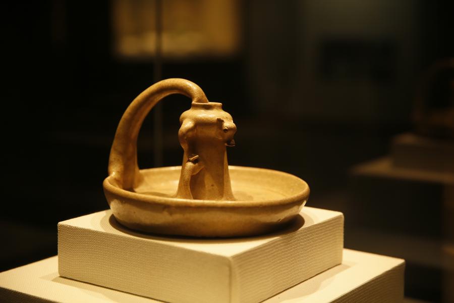 收藏于浙江省博物馆的国家一级文物东晋瓯窑青瓷牛形灯 宋立峰摄