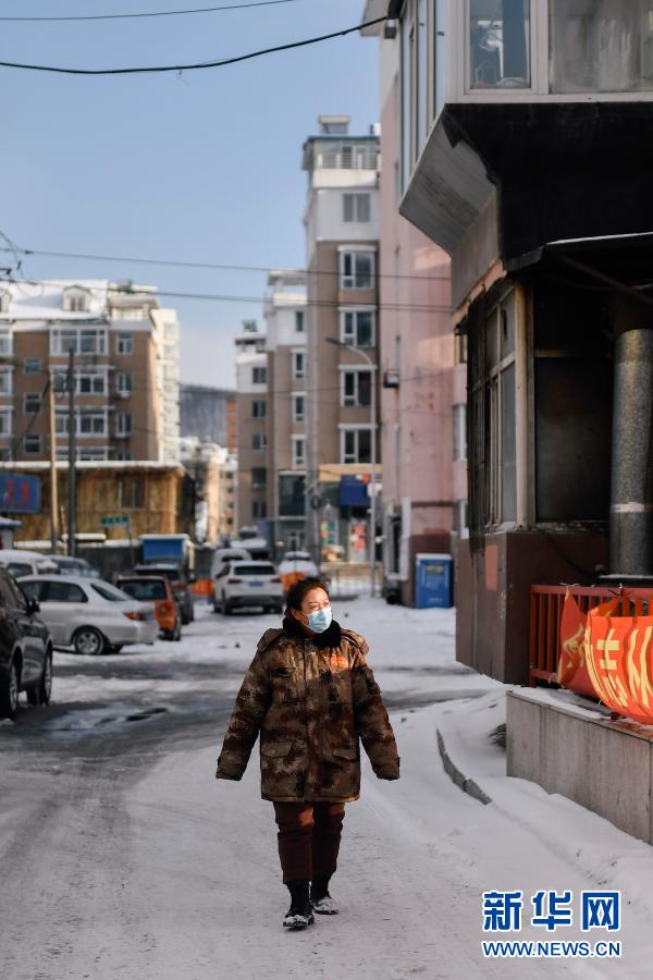 赵淑华在通化市东昌区团结街道文化社区辖区内巡逻(2月15日摄)。新华社记者 许畅 摄