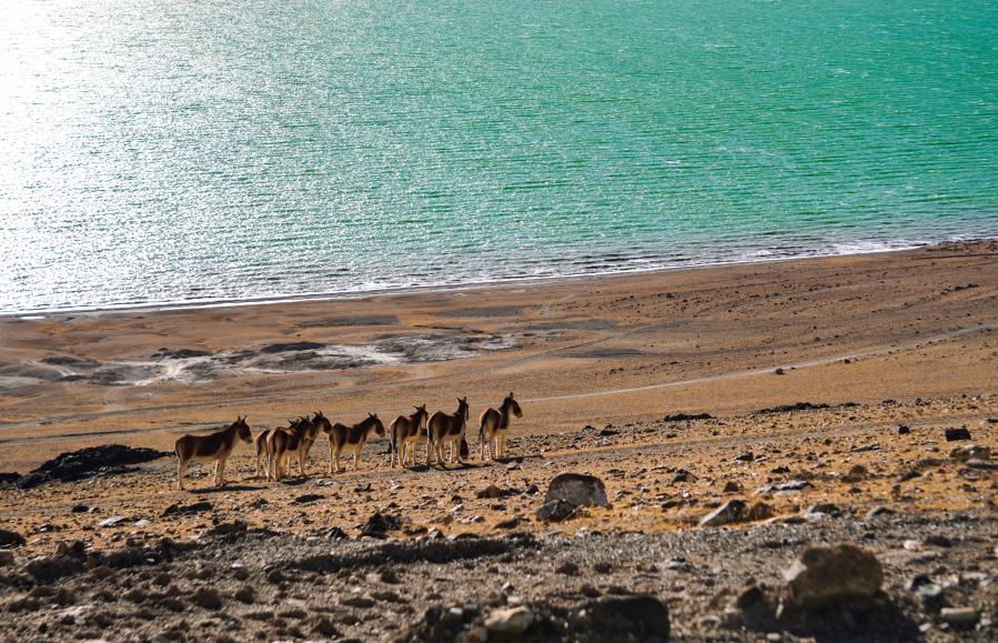 西藏羌塘国家级自然保护区内的藏野驴(2021年2月3日摄) 新华社记者 田金文 摄