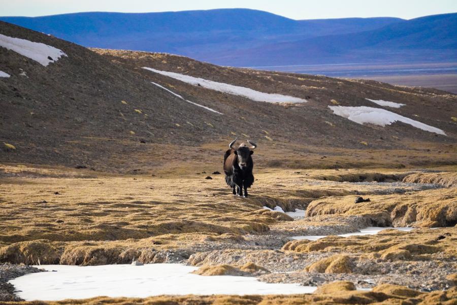 西藏羌塘国家级自然保护区内的野牦牛(2021年1月16日摄) 新华社记者 格桑朗杰 摄