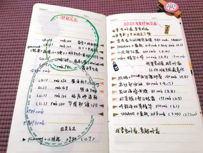 图为“90后”女孩小巩向记者展示的2020年护肤品支出账单。记者 张一琪摄